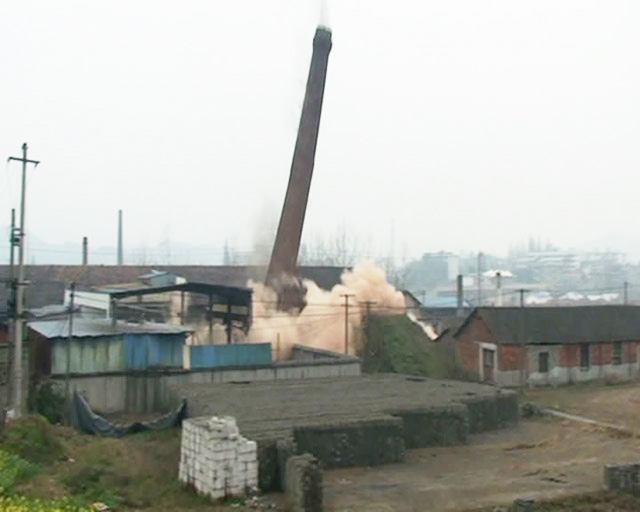 3月30日14:00整,随着新登镇镇长徐林亮的“起爆”命令,高达48米、险象环生的烟囱在数秒内按设计方案缓缓倒下,在人群热烈的掌声中被成功实施爆破拆除。