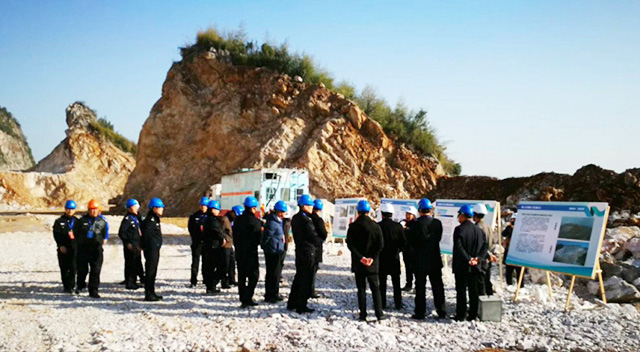 2017年12月18日下午,公安部三局马维亚副局长、张国亮副处长在浙江省公安厅副厅长金伯中、治安总队总队长阮文广、副总队长程华、调研员周卫华、杭州市公安局特警支队支队长周郑、治安支队支队长张文根、副支队长王瑞理以及西湖区公安分局、双浦派出所等有关部门同志陪同下,在ky石龙山南侧废弃矿山治理工程项目部现场观摩了混装炸药装填、爆破一体化过程作业,并在项目部召开了混装炸药应用座谈会。