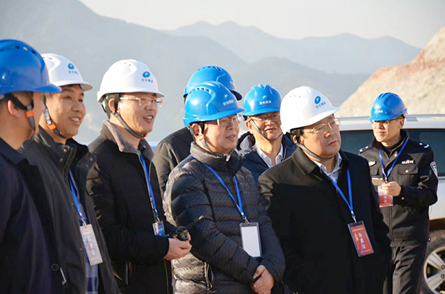 公安部三局马维亚副局长、浙江省公安厅金伯中副厅长(右三)共同出席在项目部会议室召开的现场混装炸药观摩座谈会